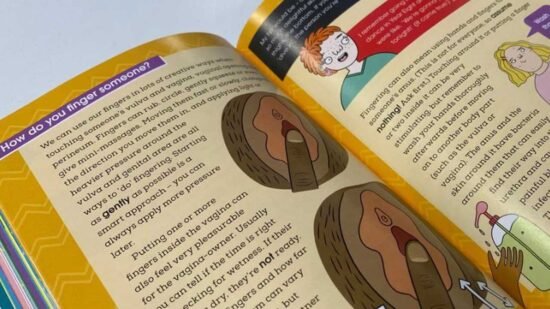 “No-silly-questions guide to sexuality” details gay copulation, blow jobs and fingering.
