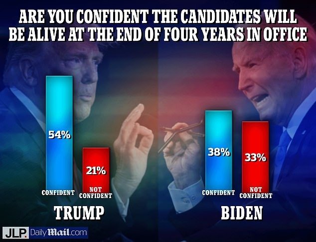 A new poll has found that a third of American voters are not confident Joe Biden will survive a second term in office, and only 38 percent believe he will make it.