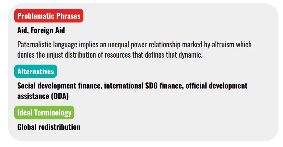 In place of ‘foreign aid’ SIDA suggests using the term ‘global redistribution’, and in place of ‘third world’, use ‘majority world’.