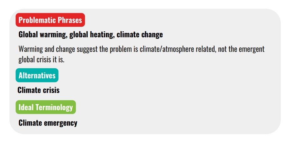 SIDA also opposes the phrases ‘global warming/heating’ and ‘climate change’ because they are not alarmist enough. Instead they offer ‘climate crisis’ as an alternative, and ‘climate emergency’ as an ideal.
