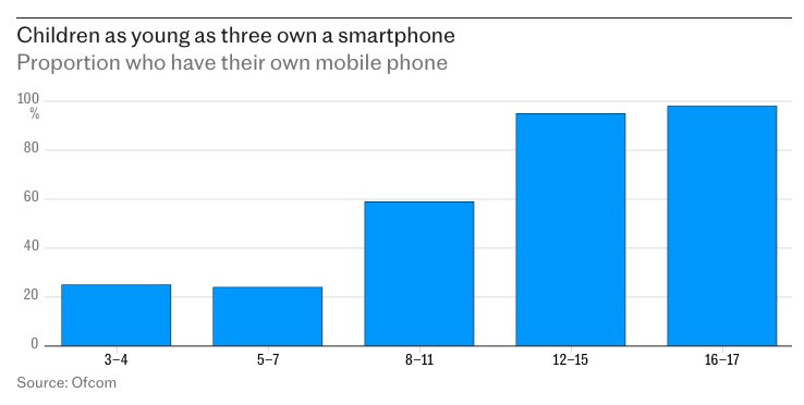 A study by the government’s communications regulator in the UK has found that a quarter of children aged just 3-4 years old own smart phones.