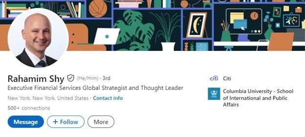 When he left the Obama administration, Shy worked in several senior executive positions at Citi Bank. He is no longer employed there.
