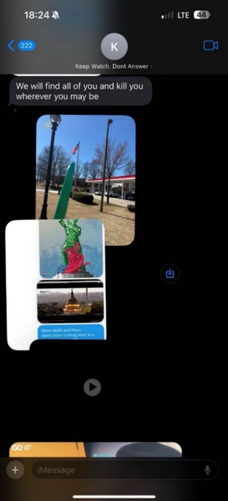 Another text read, “The home you two own … is a legitimate target and will be hit at a time and place of our choosing.”