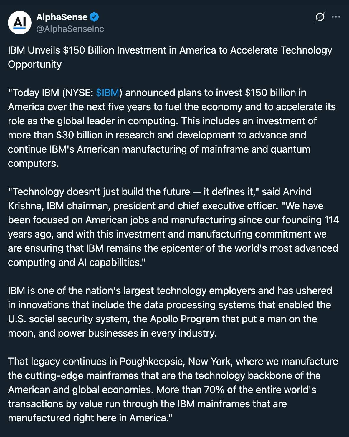 IBM revealed Monday in a press release that it “plans to invest $150 billion in America over the next five years to fuel the economy and to accelerate its role as the global leader in computing.”