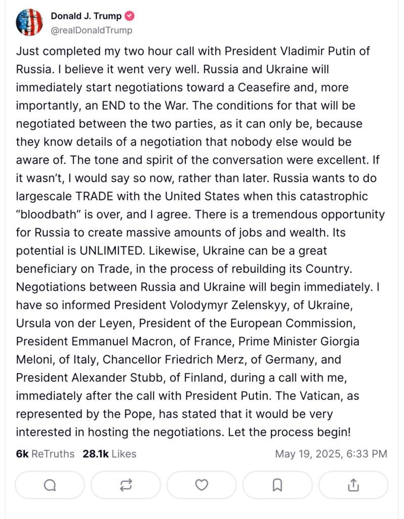 Trump has further indicated he’ll be in contact with “various” NATO leaders related to these ceasefire efforts, coming on heels of the Friday meeting between Russian and Ukrainian delegations – the first such direct engagement since efforts at talks ceased within the opening months of 2022 and the war’s start.