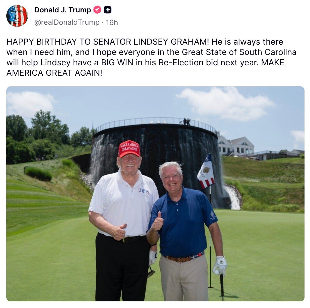 In a Truth Social post, Trump wrote “Happy Birthday to Senator Lindsey Graham!” alongside the pair smiling for a picture while golfing.
