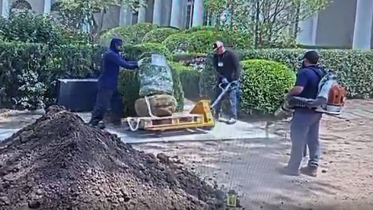“It was a subcontractor that was installing heavy landscaping on a steel cart that was broken and tilting badly, with it rubbing hard against the soft, beautiful stone,” he added.