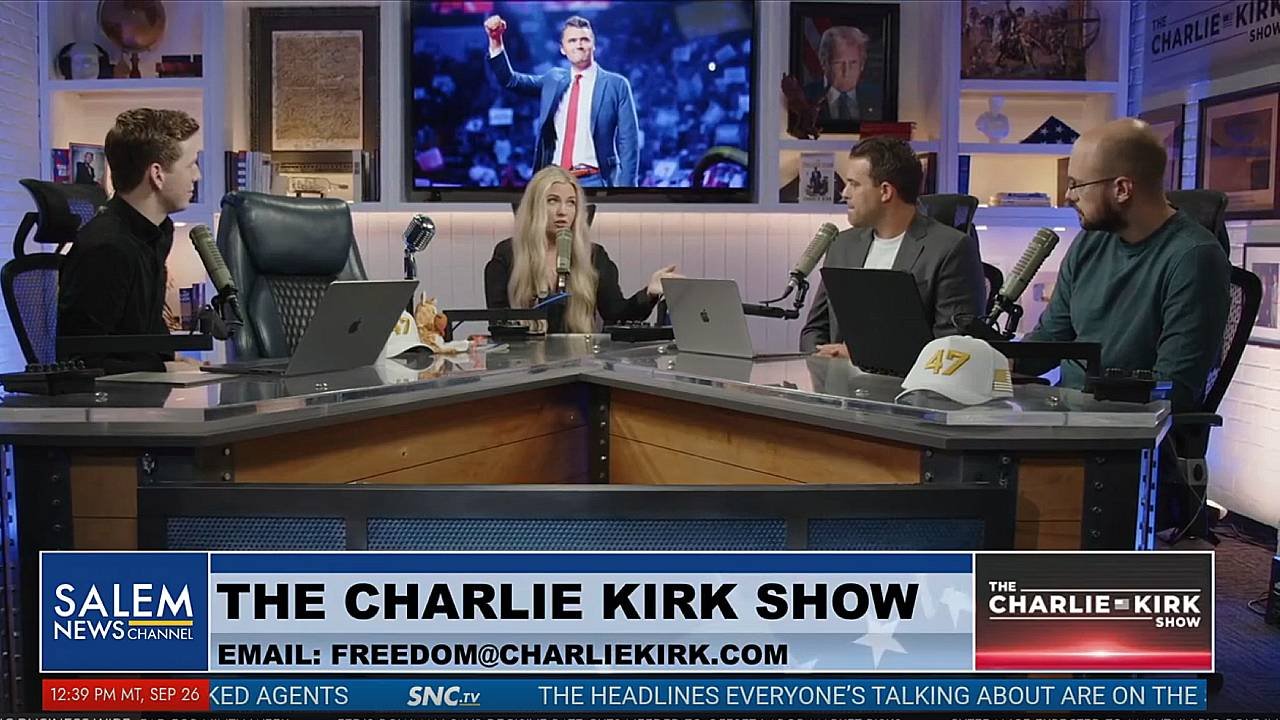 “Collectively, each one of you are a piece of his brain,” Erika Kirk said. “I know we’ve talked about this. Blake [Neff], economics, foreign policy, Andrew [Korvet], pretty much a lot of stuff. Mikey [McCoy], humor, Christianity, sports, youth, social, pop culture, Miss Daisy, like everyone, has a piece of his brain that still lives on, and so what I’m getting at here is, the Charlie Kirk Show is not going anywhere. My husband’s voice will live on; the show will go on. We will have rotating hosts.”