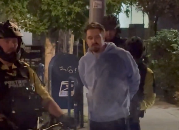 And, here we go again. Real America Voice’s Ben Bergquam reported that a conservative activist was arrested in front of the ICE building. “They arrested Nick Sortor last night, and now they’re arresting this guy. Portland Police protect ANTIFA.”