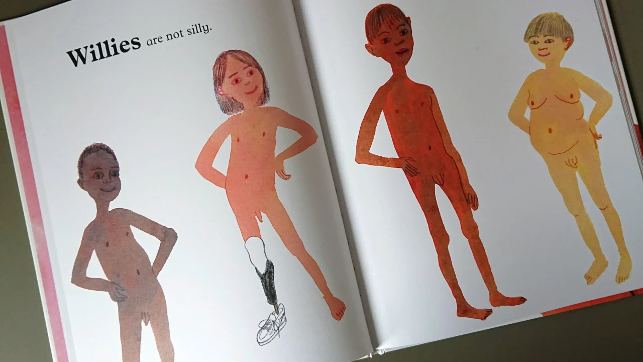The Daily Mail notes that one picture book, It Isn’t Rude To Be Nude, sits prominently at the front of the room, featuring a drawing of a naked man sprawled across its opening pages. Other illustrations include nude adults with exposed genitalia, accompanied by captions like “willies aren’t silly” next to drawings of penises.