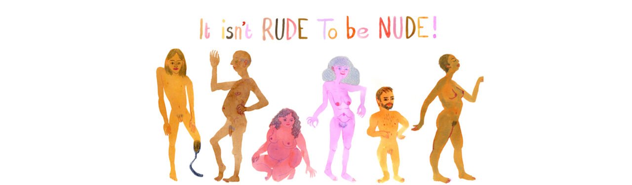 The cover boldly states “contains nakedness – and that’s OK!” Images from the book’s interior include pages of diverse bums and nipples with messages like “Everyone has a bum” and “Nipples are normal.”