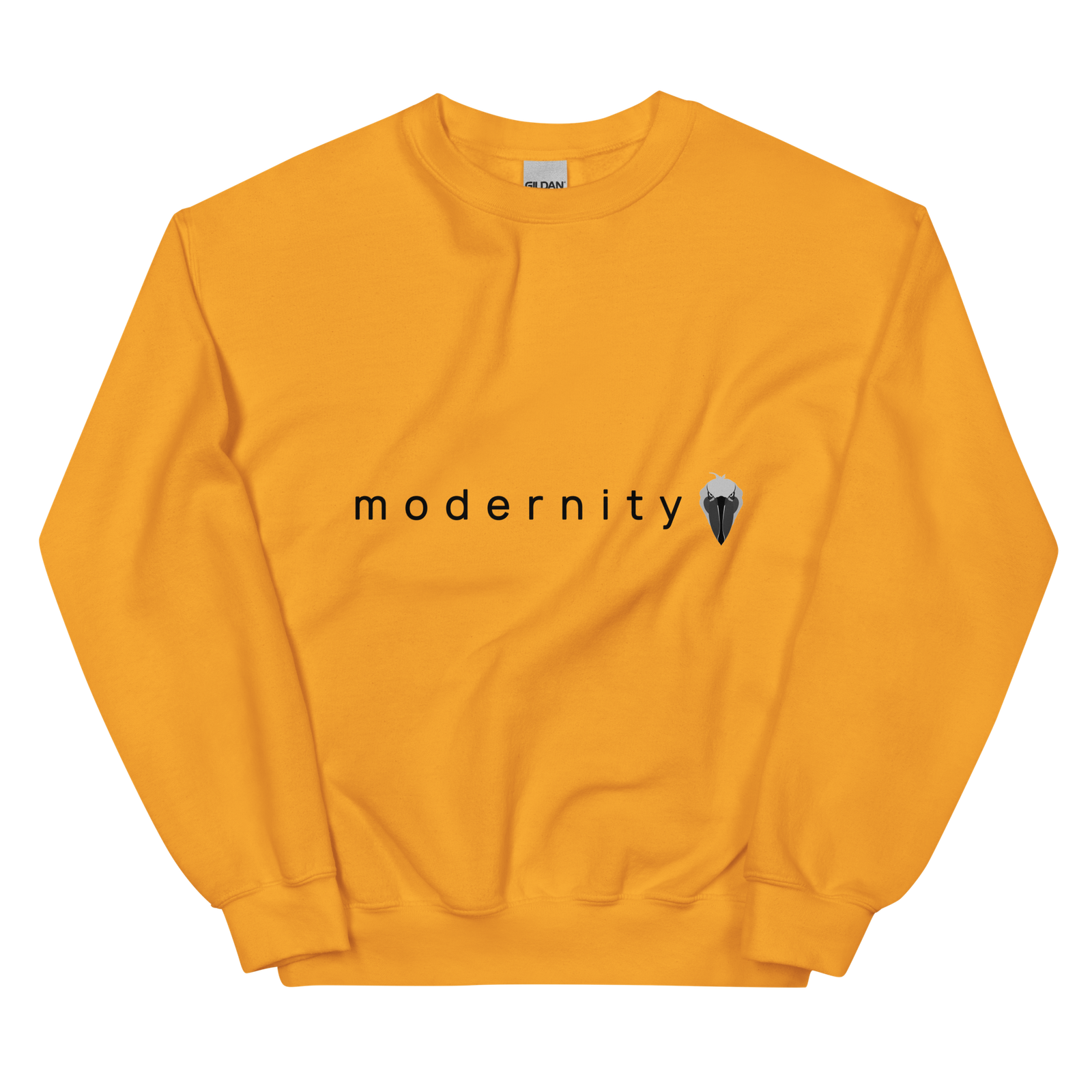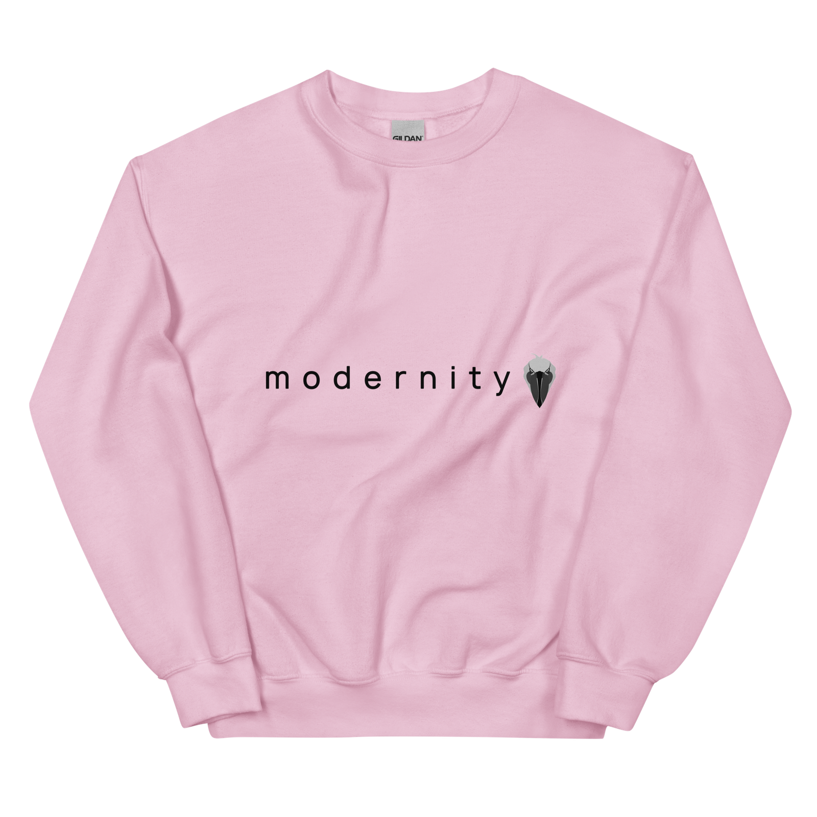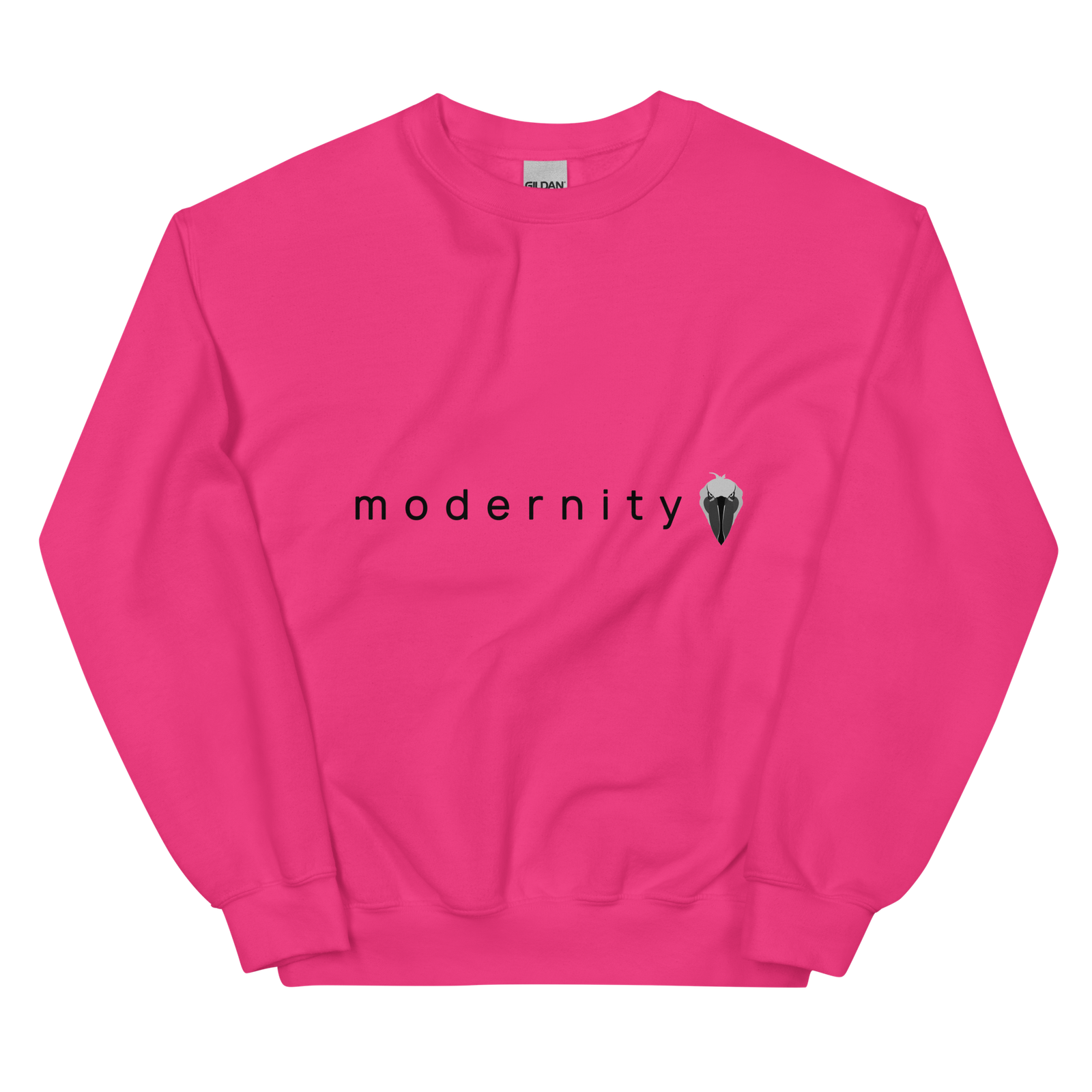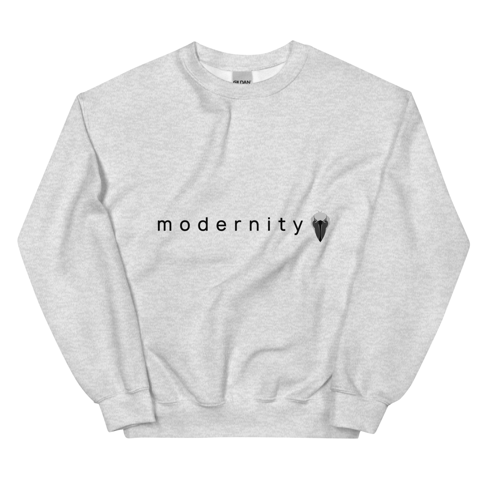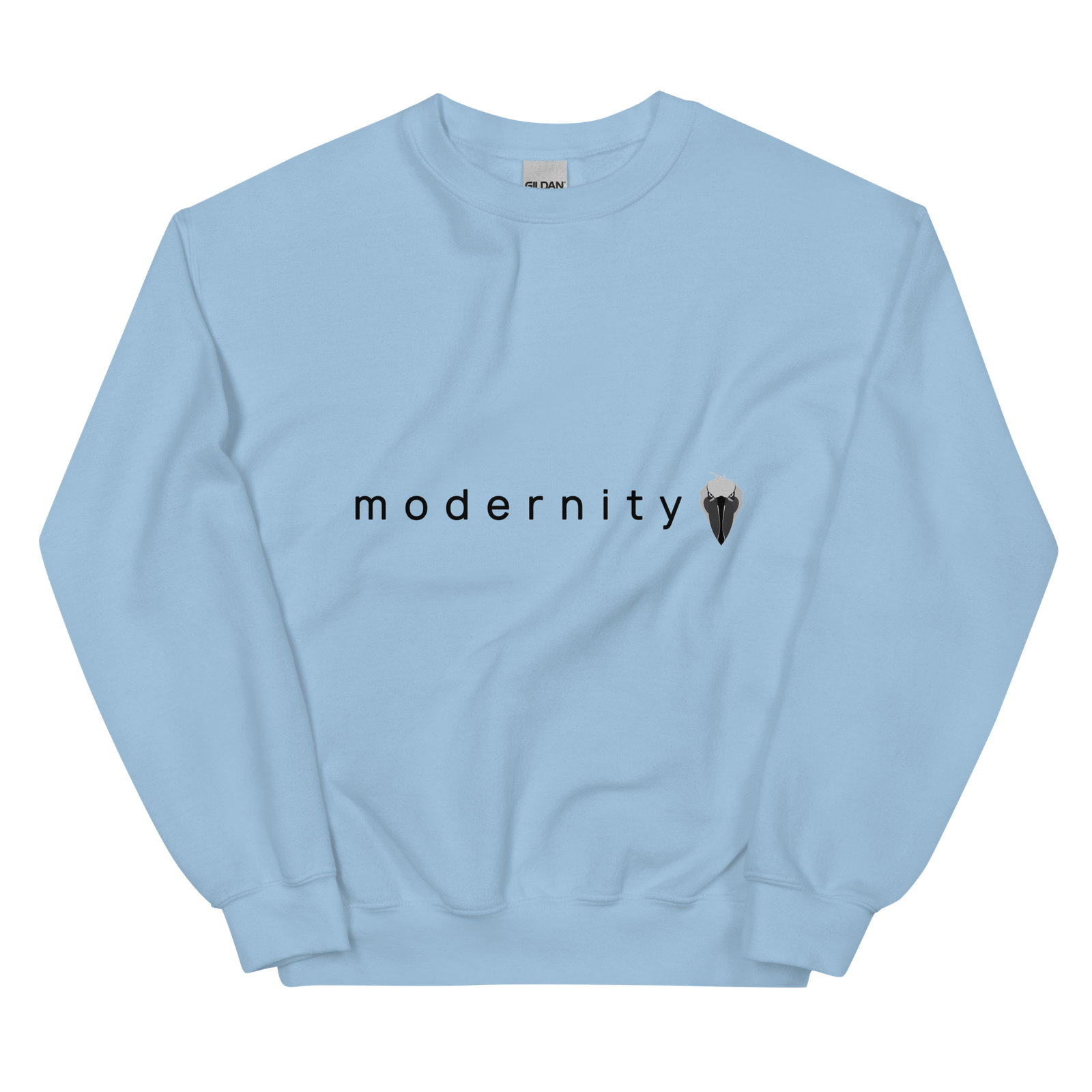 Catch the eye of passers by with this sweatshirt emblazoned with the m o d e r n i t y typeface and the classic shoebill! Available in a range of sizes and colours.