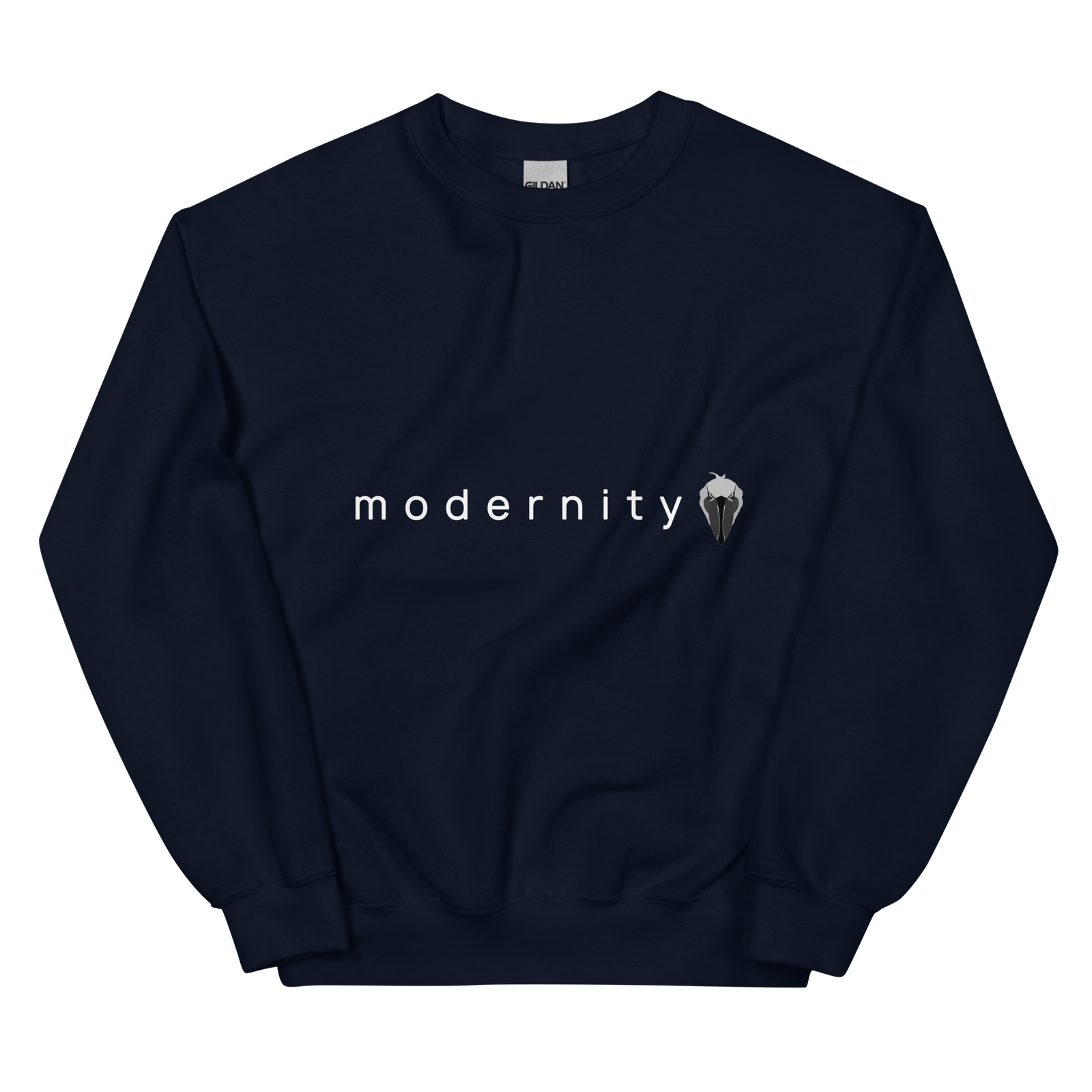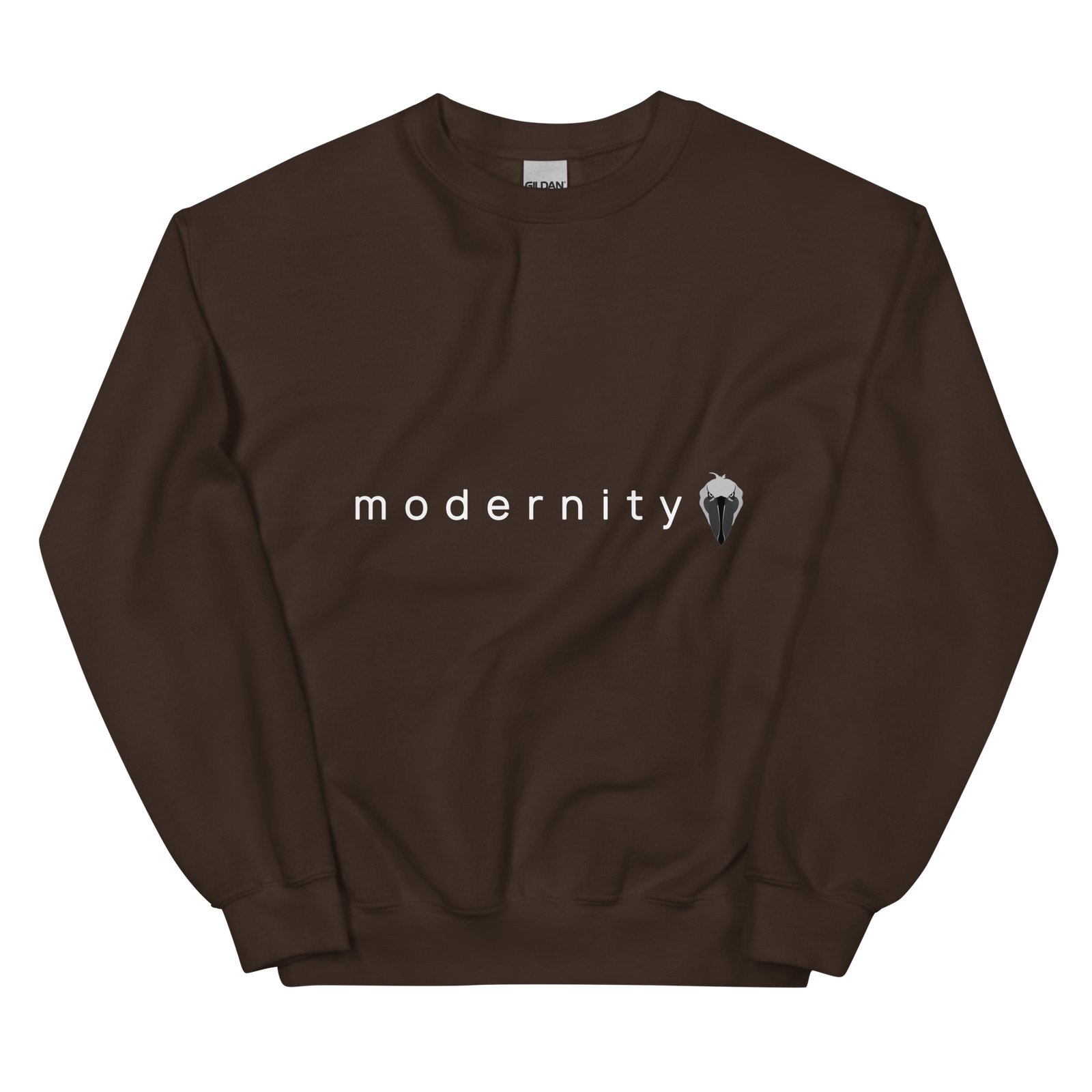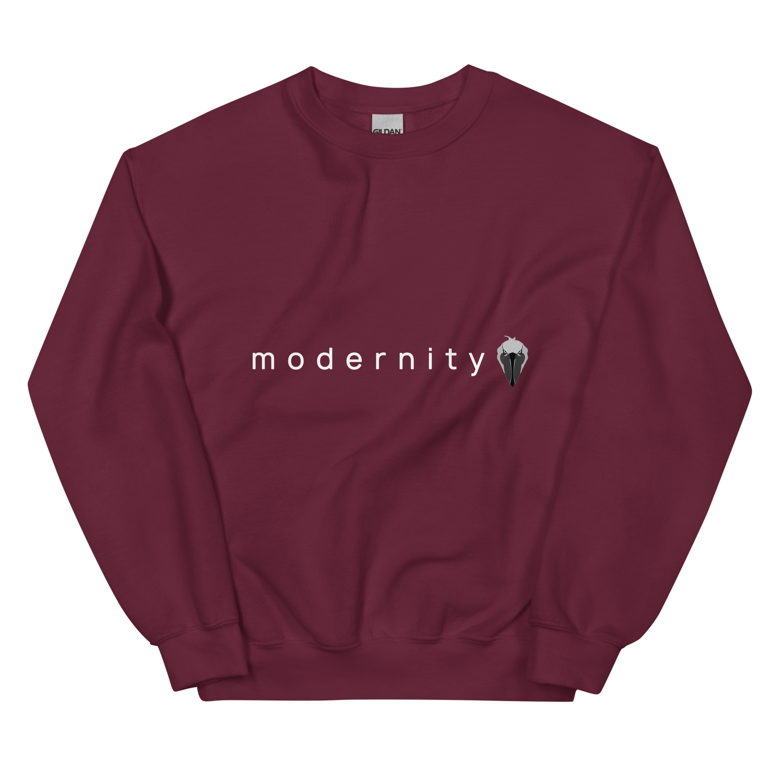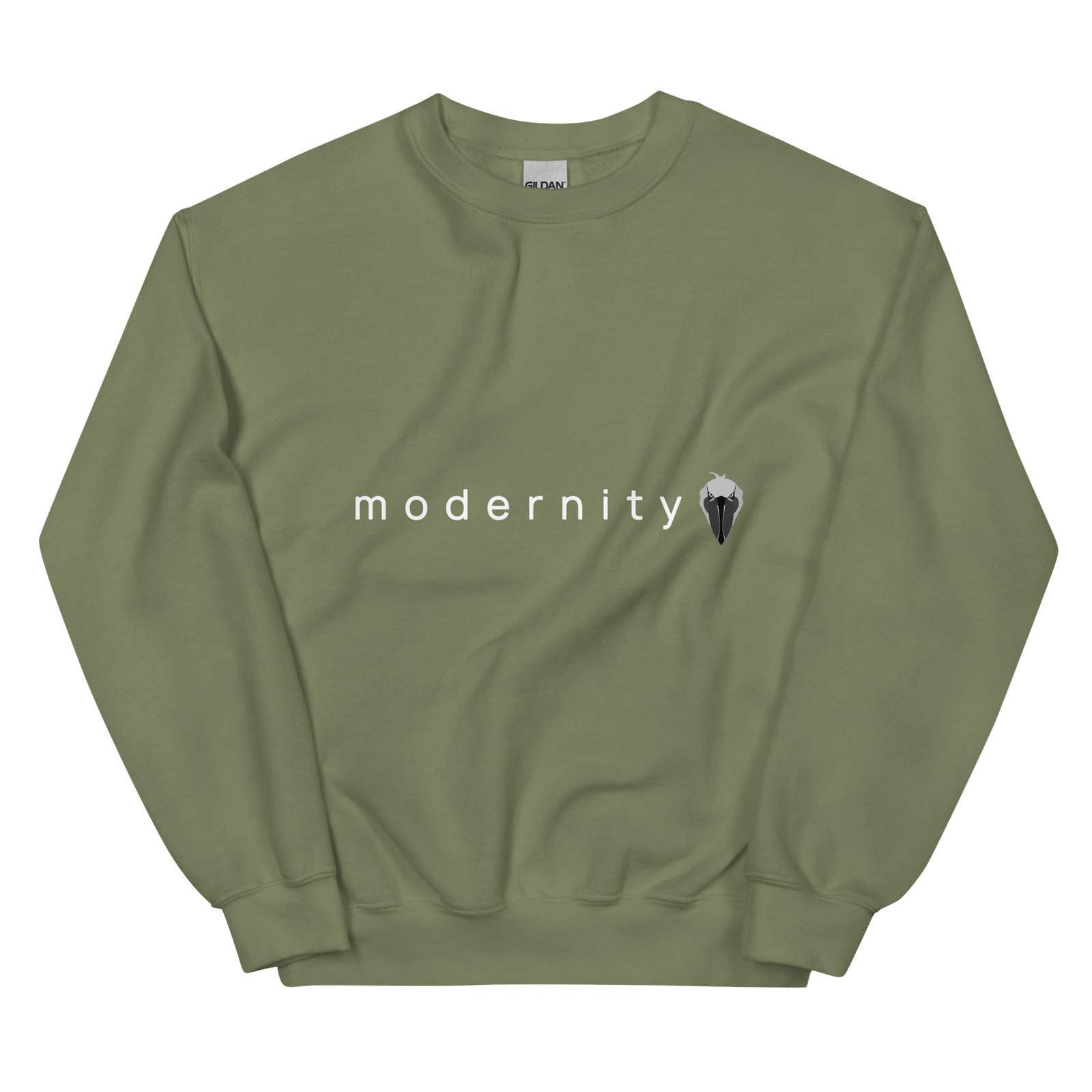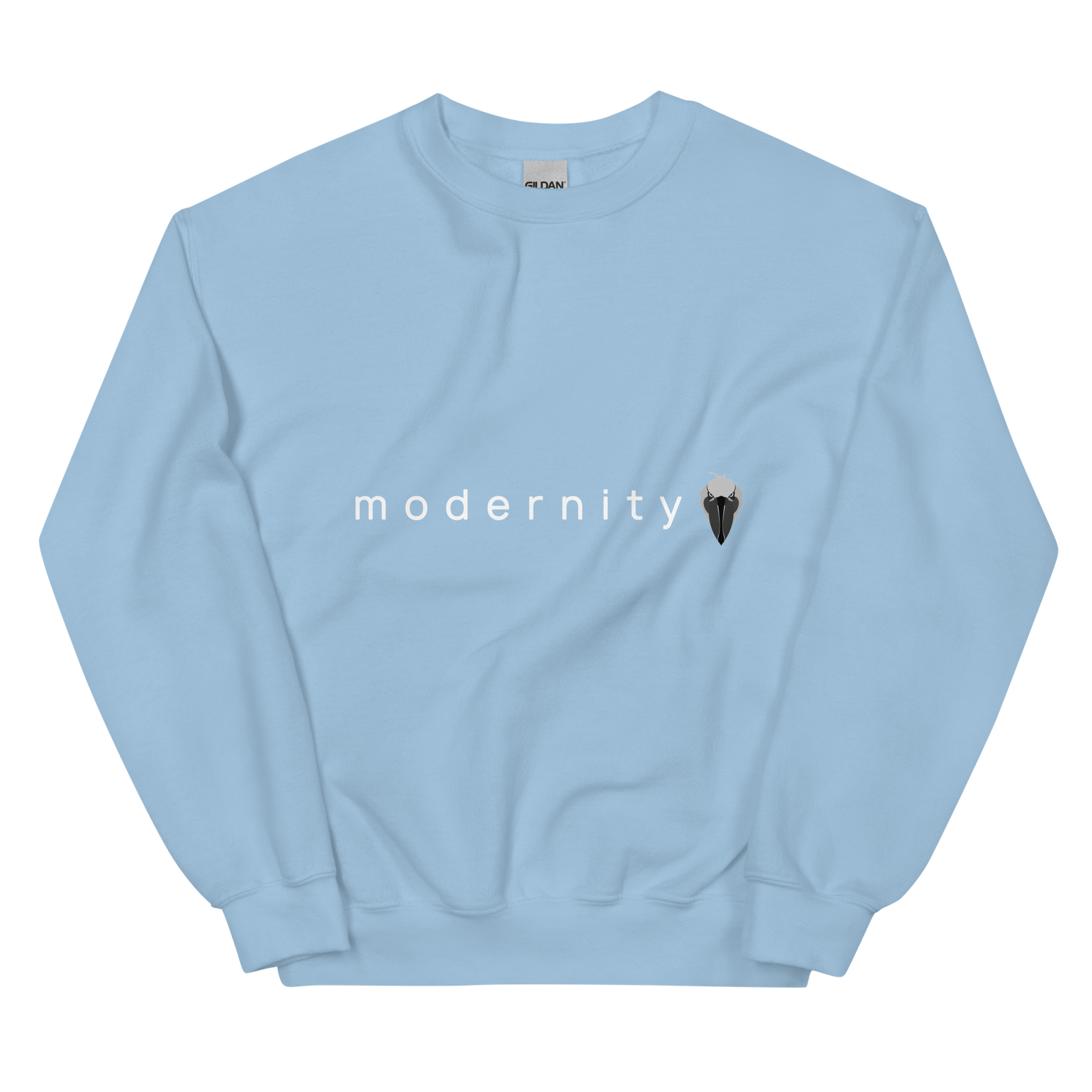 Catch the eye of passers by with this sweatshirt emblazoned with the m o d e r n i t y typeface and the classic shoebill! Available in a range of sizes and colours.